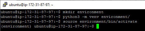 然后我们使用以下命令在“environment”目录中设置我们的虚拟环境。