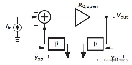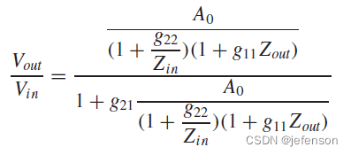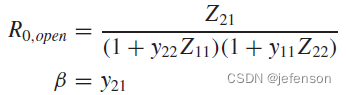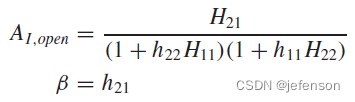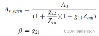 ),此时,负反馈放大电路的输入阻抗是原前馈网络输入阻抗的1/(1+Aβ),输出阻抗是原前馈网络输出阻抗的1/(1+Aβ),但实际反馈网络的输入输出阻抗是有限值,当输出开路时计算闭环增益: