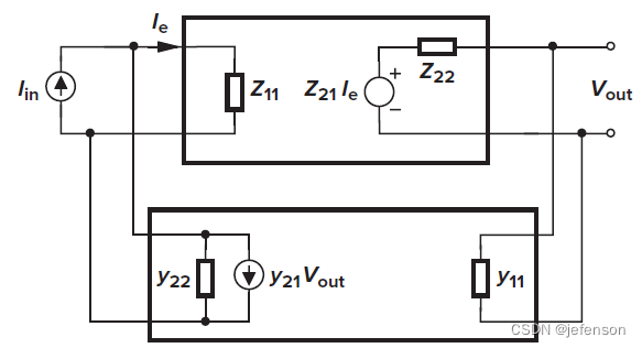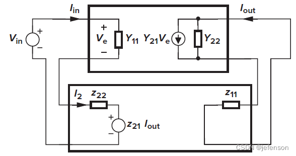 前馈网络的输入信号是电压信号,输出信号是电流信号,而反馈网络则相反,输入信号是电流信号,输出信号是电压信号,所以前馈网络使用Y模型,反馈网络使用Z模型,忽略放大电路的内部反馈,则