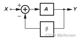 假设前馈网络和反馈网络与频率无关(例如只考虑低频),前馈增益和反馈增益退化为A和,此时输出与输入的关系: