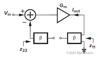 ),此时,负反馈放大电路的输入阻抗是原前馈网络输入阻抗的1/(1+Aβ),输出阻抗是原前馈网络输出阻抗的1+Aβ倍,但实际反馈网络的输入输出阻抗是有限值,当输出短路时计算闭环增益: