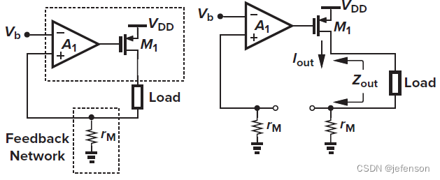 电流上升→M1栅极电流下降。按照右图重构电路计算修正的开环增益,修正的开环电路输出阻抗是