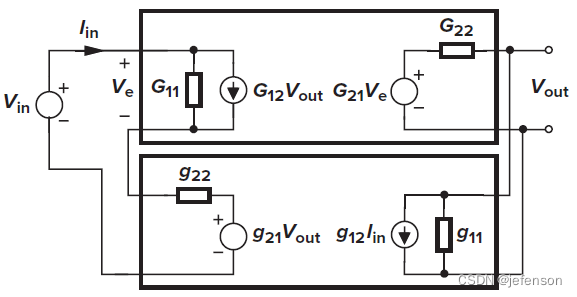 前馈网络的输入信号和输出信号是电压信号,同理反馈网络的输入信号和输出信号也是电压信号,所以前馈网络和反馈网络均使用G模型,忽略放大电路的内部反馈,则