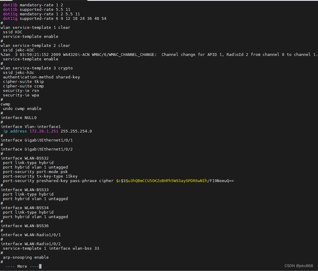 [WAP722S-wlan-st-2] security-ie rsn //相当于WEB中的WPA2