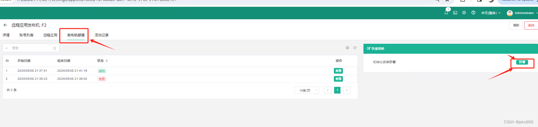 4.5.2点击发布机部署,双击右边按钮部署