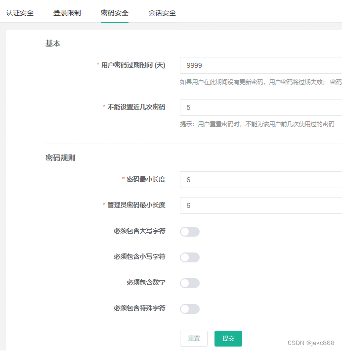 加固后密码策略: