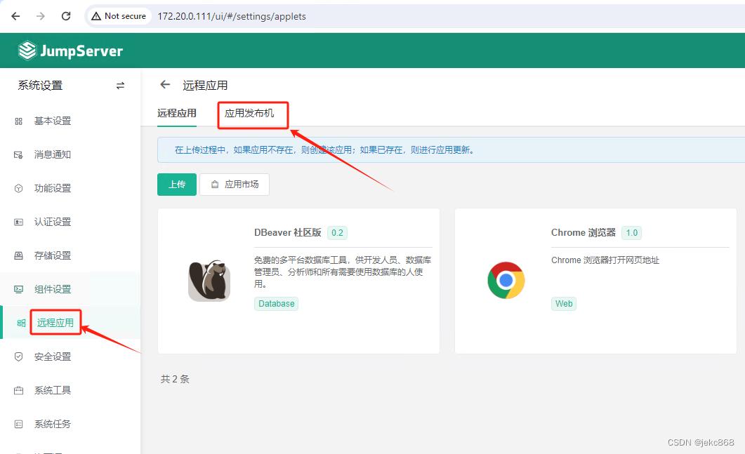 4.2在设置页面点击:远程应用-应用发布机