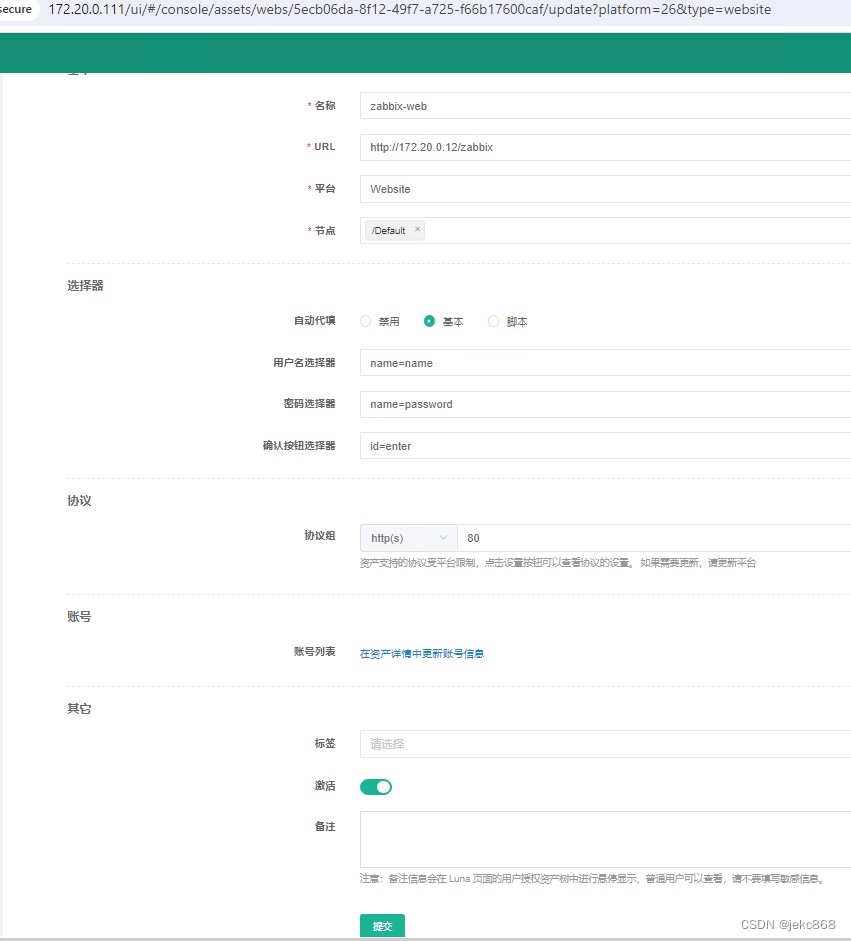 由于防火墙密码安全没有达到审计要求,需要加固防火墙用户安全,通过JumpServer发布防火墙登录页面,提供远程访问