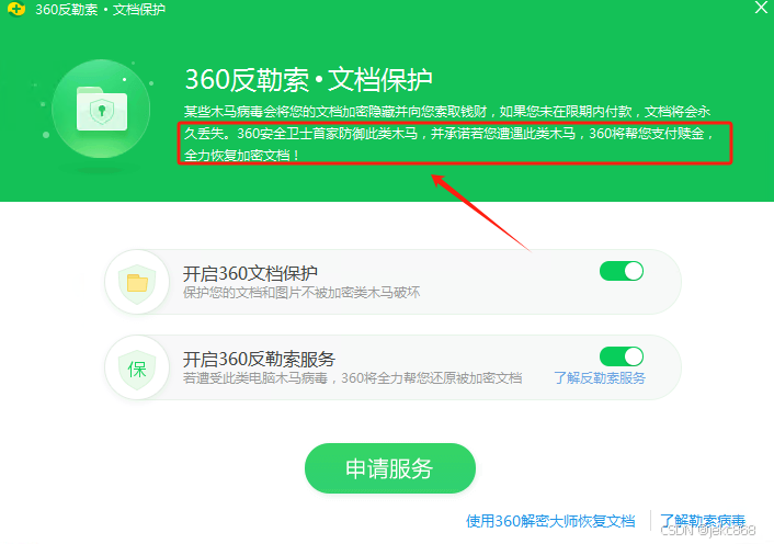 千万别信这个,在黑客面前,这个一点作用也没有,360也不会帮你支付赎金,给你一堆理由。