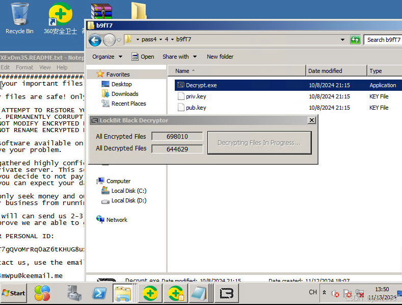 黑客入侵日期是2024-10-13,自动退出防护,很多人以为启动360反勒索就没事了,反正360会理赔,其实如果真发生了,360是不会理赔的,千万别信!