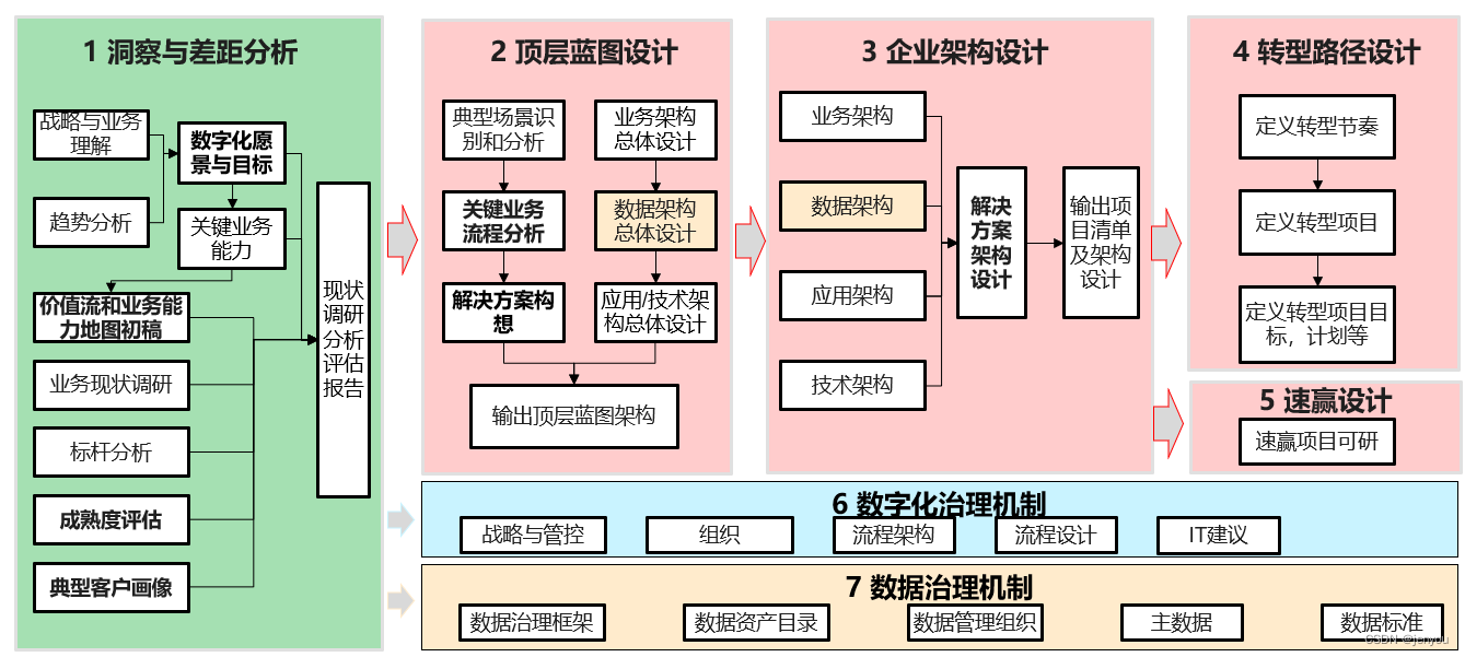 数字化转型为何一定要做企业架构规划? 企业架构是战略和实施之间的桥梁,业务变革的关键使能,是设计IT的基础,如果缺少企业架构,那么数字化转型的战略、目标和落地、执行之间将脱节。也就是说数字化转型很难成功。