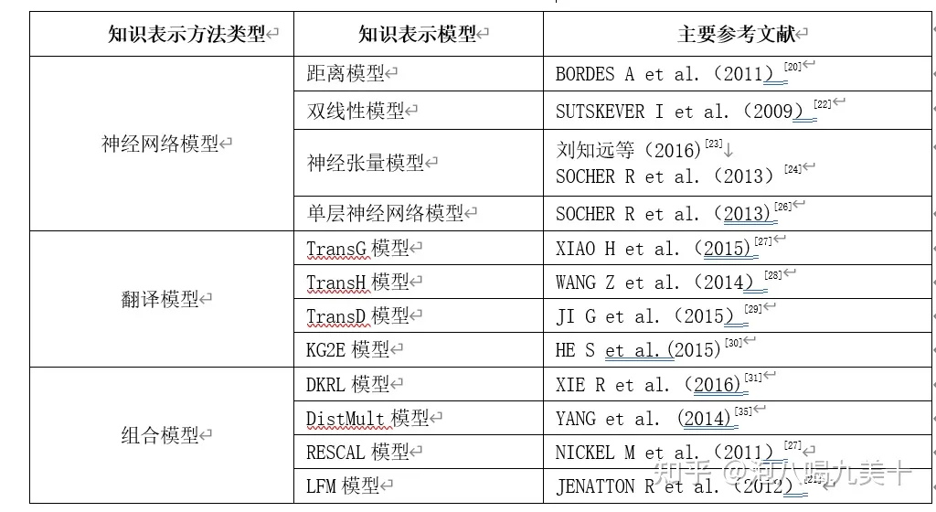 随着自然语言处理领域词向量等嵌入(Embedding)技术的出现,人们也尝试着把实体和关系投射到一个低维的连续向量空间,用向量表示每一个实体和关系。这种向量表示法有利于计算,通过数值运算更有效的发现实体间隐性知识及潜在假设,发现新实体和新关系,并对大体量的信息融合具有重要意义。向量类的知识表示法又分为翻译模型,组合模型以及神经网络模型. 近几年这类模型发展迅速, 新的算法不断涌现, 下表列出几种向量类知识表示所用到的模型。