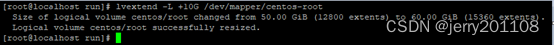 命令:lvextend -L +10G /dev/mapper/centos-root #扩大根目录所在的逻辑卷,增大10G