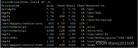 命令:mount /dev/mapper/centos-home #挂载/dev/mapper/centos-home目录