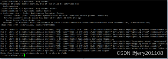 注意:如命令1执行后提示:Warning: Stopping docker.service, but it can still be activated by: docker.socket,需要执行命令2关闭docker自动唤醒机制,最后查询docker状态,如依旧处于Active状态,需重复执行命令1关闭docker服务。