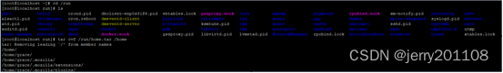 命令:tar cvf /run/home.tar /home #将/home目录打包放到/run目录下