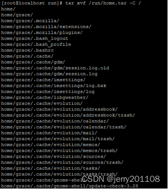 命令:tar xvf /run/home.tar -C / #将备份文件解压