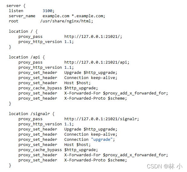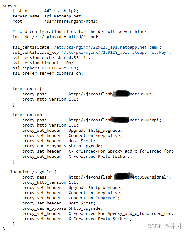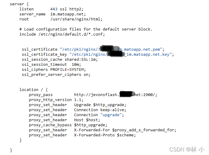 其他反向代理服务配置省略了,根据地址配置server_name字段,根据各业务请求要求配置location字段。