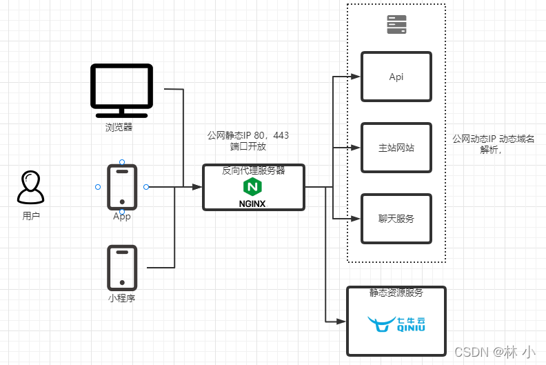 然而小程序的正式线上版本,只可以跟指定的域名进行网络通信,且域名只支持 https,wss通信协议,因此需要配置预发布环境的反向代理服务。