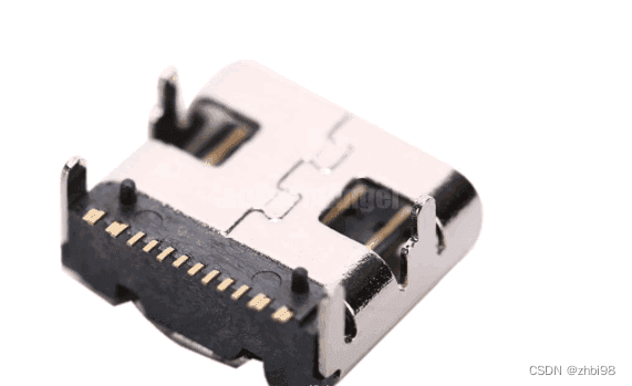 Vbus、GND、CC1、CC2引脚。接口两侧同样对称分布 Vbus 和 GND ,CC1,CC2 引脚用于支持正反接入,以及快充协议的支持,具体可以看下图的实物图。