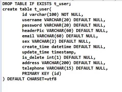 update("INSERT INTO t_user(id,username,password,sex,create_time,is_delete,address,telephone) "