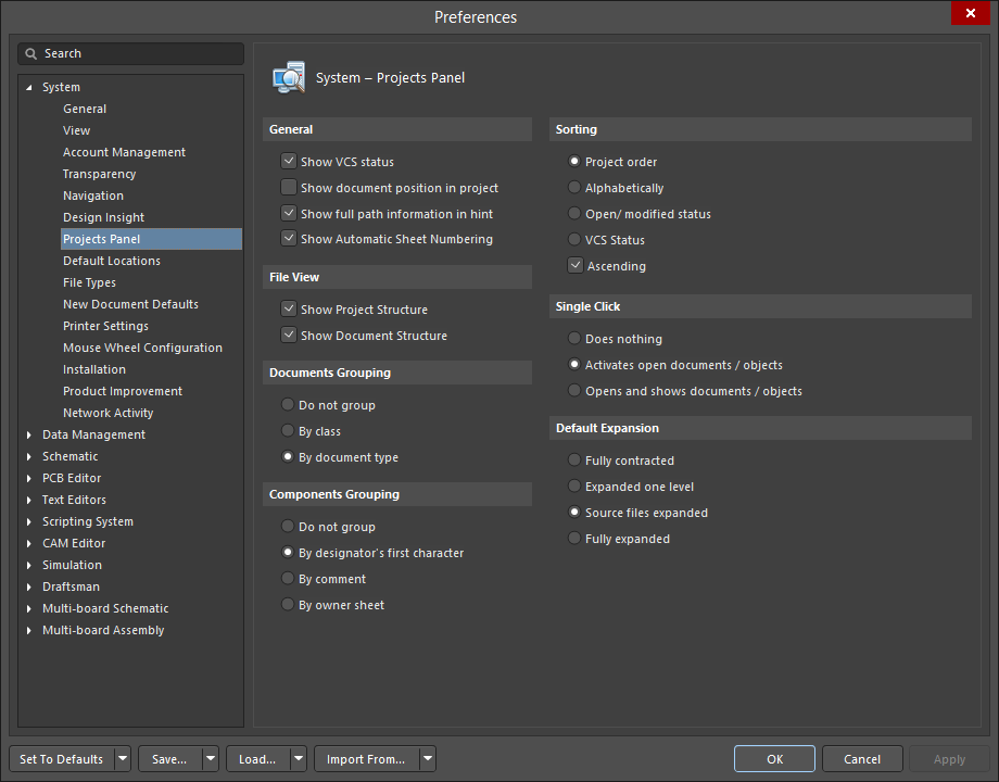- Source files expanded - 选此项仅显示源文件,如原理图之类,其他文档类型挂起。