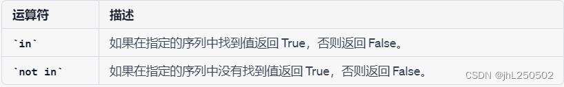 成员运算符用于测试指定值是否为序列的成员,包括字符串、列表、元组、集合和字典
