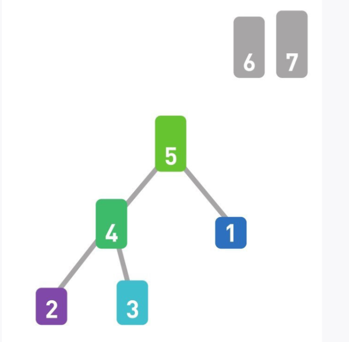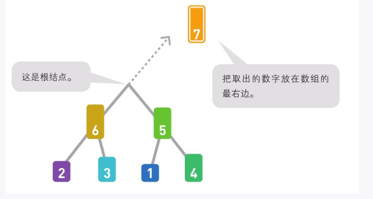 05 同样地,取出根结点的数字6,将它放在右数第2个位置上。