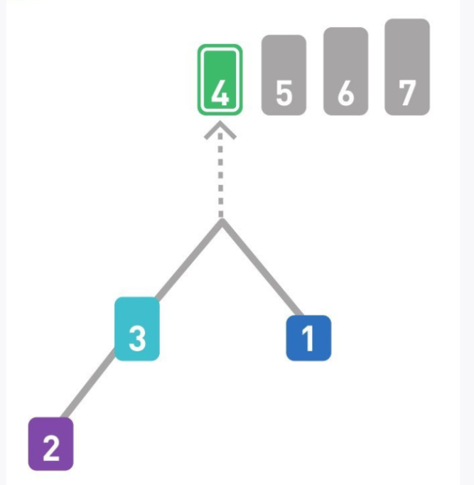 在堆中存储数据时必须遵守这样一条规则:子结点必定大于父结点。因此,最小值被存储在顶端的根结点中。从堆中取出数据时,取出的是最上面的数据。这样,堆中就能始终保持最上面的数据最小。同时由于最上面的数据被取出,因此堆的结构也需要重新调整。