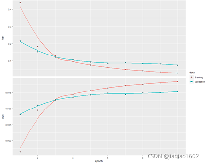 利用plot()函数绘制出10次训练周期的误差及准确率曲线
