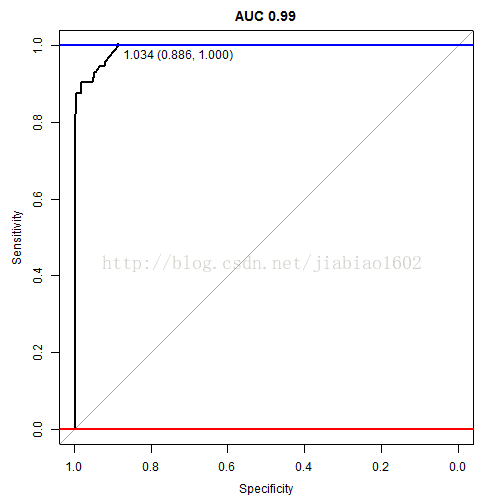 auc得分是0.98,已经是非常不错的结果了(因为它的范围是在0.5到1之间)。