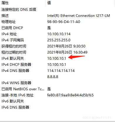 进入以太网络设置里面查看详细信息,也可cmdipconfig,找出网管