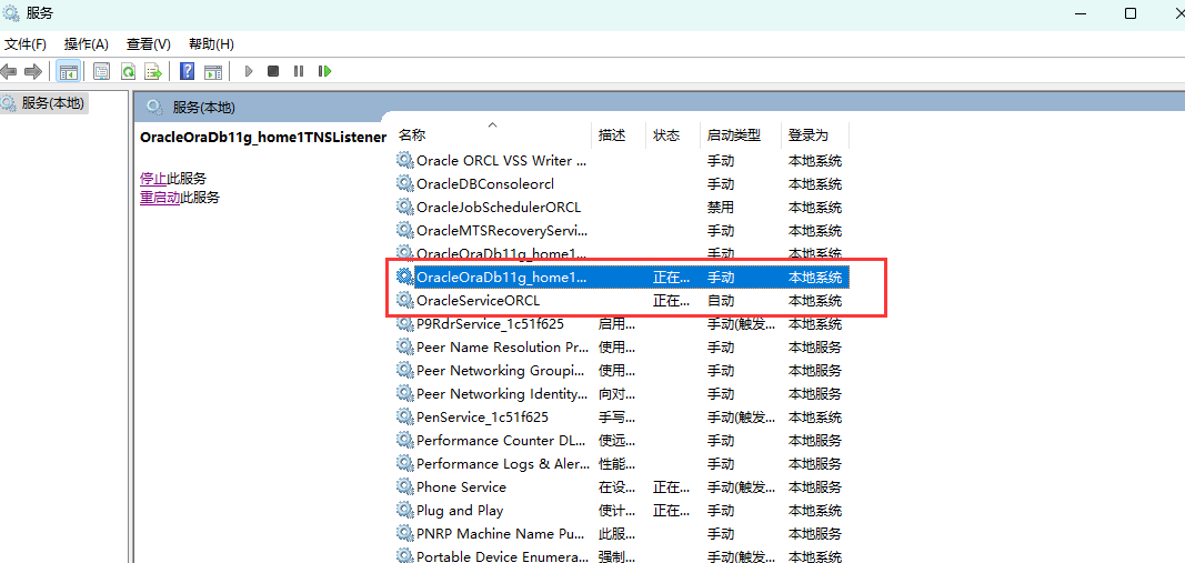 注意:OracleOraDb11g_home1..有两个,启动OracleOraDb11g_home1TNSListener这个才是监听的,把鼠标放在这个上面就能看到OracleOraDb11g_home1TNSListener服务