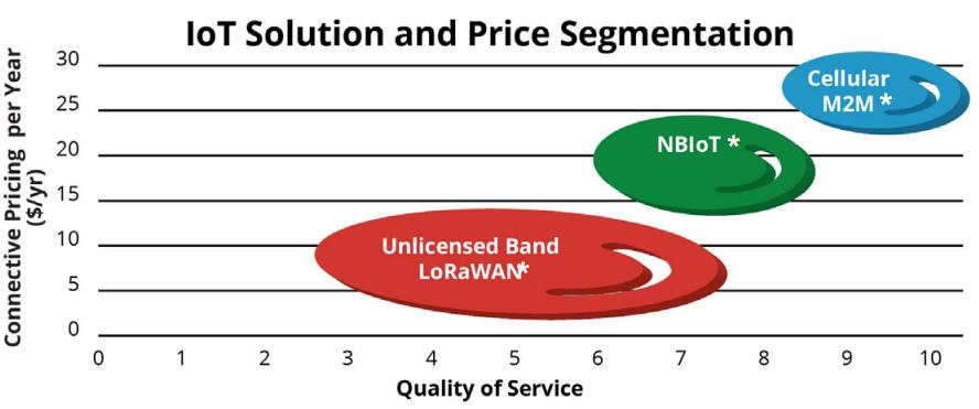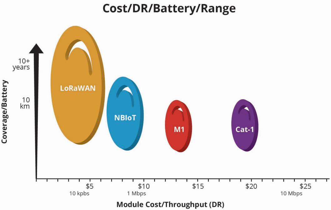 NB-IoT是同步协议,节点更复杂,硬件成本更高;同时,电信领域每个终端都需要缴纳版税(如每台手机需要缴纳5美金)。在4G/LTE基站升级NT-IoT,大约需要15k美金。