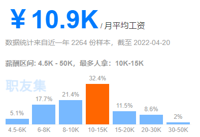 其中大部分测试员的平均薪资在10K-15K这个区间,北京果然不负众望,保持了第一的水平,成为了众多城市的薪资天花板。