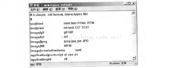 ~~映射关系定义语法:<mime类型><空格><以空格分隔的文件扩展名>,例如,text/plain txt text TXT以上语句将文件后缀名为“.txt” ,".text","TXT"映射到mime类型“text/plain”中。