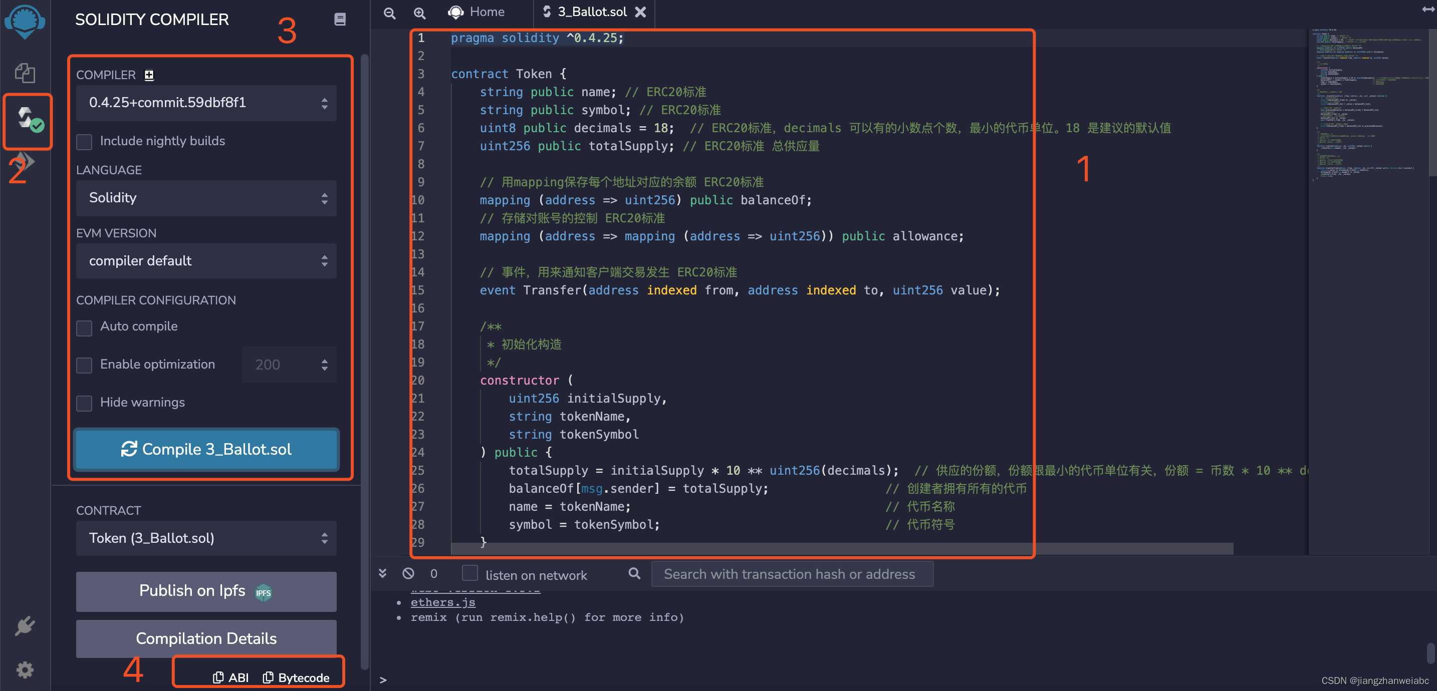 复制IDE网站的ABI和bytecode到合约上传网站,在合约网站的网页最底部输入合约参数,发送交易即可。