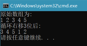 例:长度为n=5的数组a的元素为{1,2,3,4,5},将其右移k=3位后得到{3,4,5,1,2}。其移动过程为{1,2,3,4,5}向右移动一位得到{5,1,2,3,4},向右移动两位得到{4,5,1,2,3},则向右移动三位得到{3,4,5,1,2}。由于当时面试之前我并没有见过此题,所以一时半会想不到算法,但之后发现此题并不难,完全可以看做普通的数组逆序来处理。循环右移k位,则数组中前n-k个元素会被移动,同时数组中最后k位的元素将会被移动到数组开始的位置。那么我们可以将原始数组分为两部分进行单独处理,先将数组中前n-k个元素进行逆序,之后再将最后的k个元素进行逆序,最后将整个数组再进行一次逆序即可。这样的话,其对应的代码为: