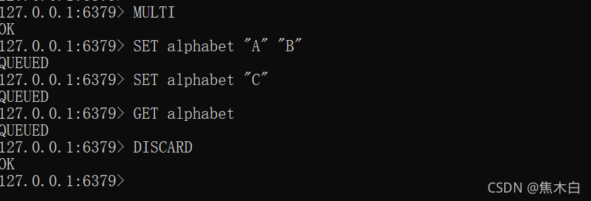 | DISCARD | 取消事务,放弃执行事务块内的所有命令 | ||