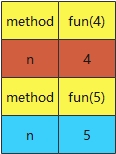 假如初始传入参数值为 5,那么方法 fun(5) 的调用信息先入栈