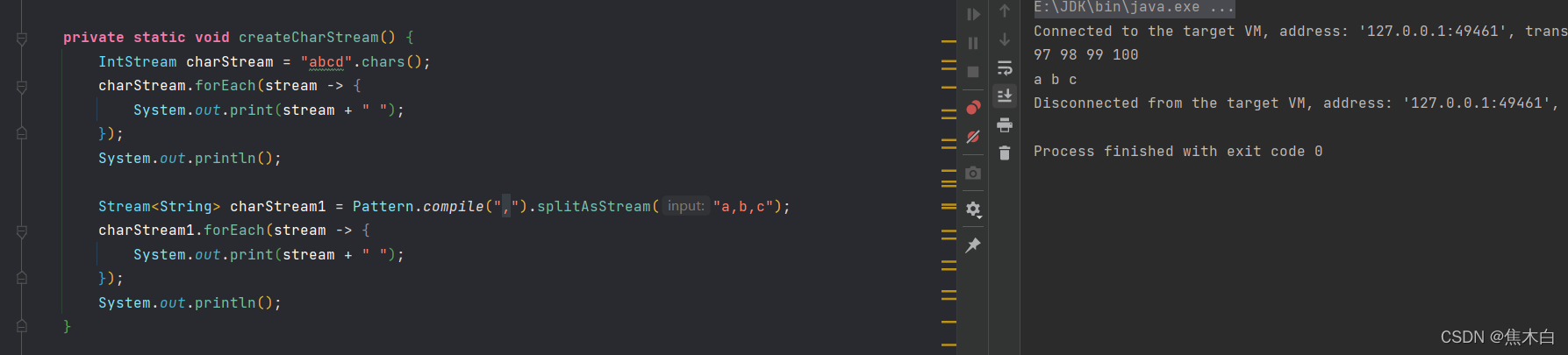 关于流的用法的全部代码如下:
