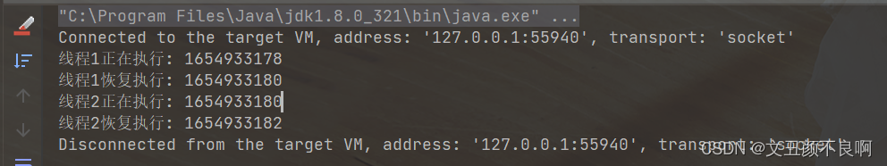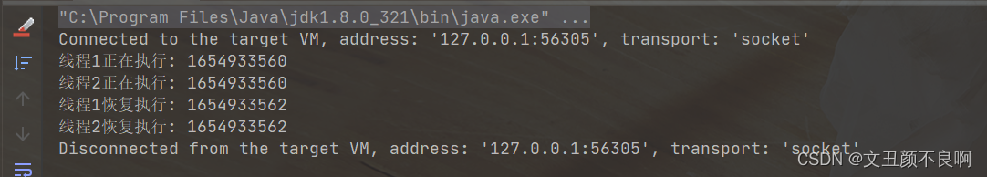 System.out.println(Thread.currentThread().getName() + "恢复执行: " + System.currentTimeMillis() / 1000);