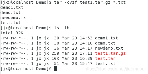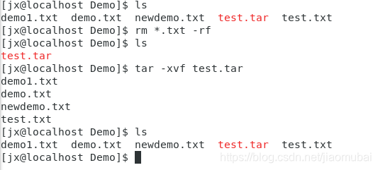 tar -f 指定档案文件名称,f后面一定是.tar文件