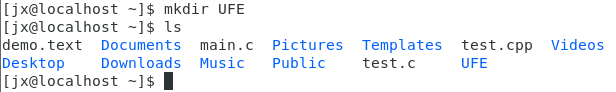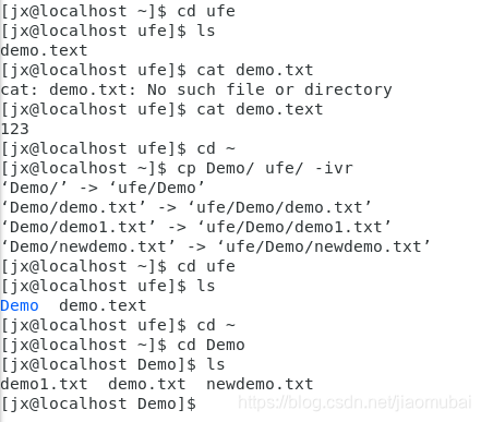 复制之前,ufe目录下只有一个文件demo.text,将Demo整个目录复制到ufe目录下之后,ufe目录下除了其本身的文件外还多了一个目录,即Demo
