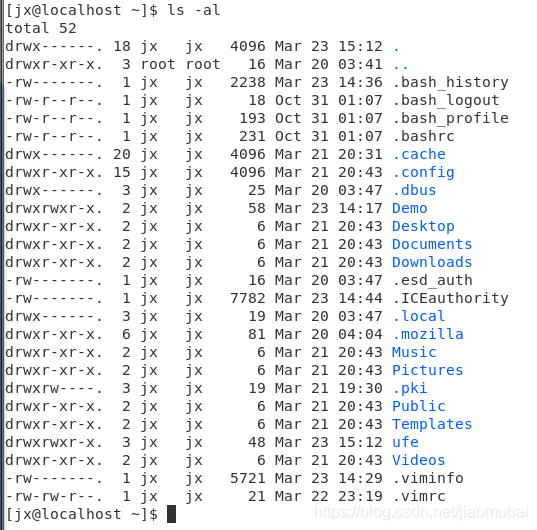 ls -al 显示所有文件的详细信息