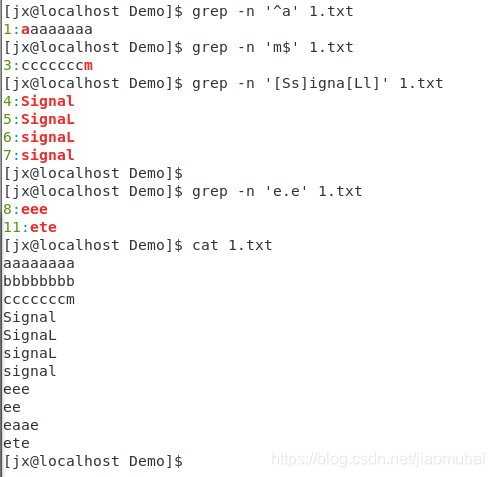 $ 行尾,grep -n ‘m$’ 1.txt 搜索以m结束的行