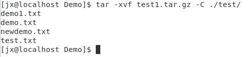 示例:将test1.tar.gz解压到当前目录下的test目录下