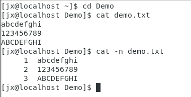 cat -n 加行号显示文件内容