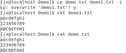 cp -i 交互式复制,在覆盖目标文件之前给出提示