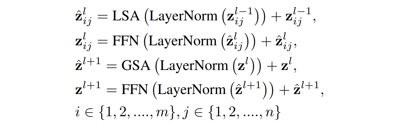 考虑到对不同子块进行交互,最简单的解决方式就是在每层 local attention block 后面,添加一个额外的标准全局self-attention层,作者用实验证明了这种操作能够提升,但计算量很大,为 O ( H 2 W 2 d ) O(H^2W^2d) O(H2W2d)。